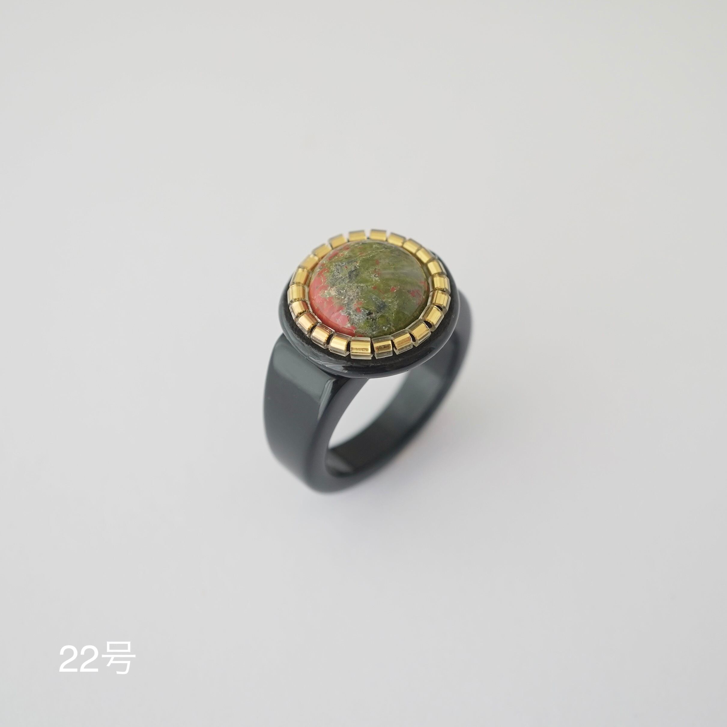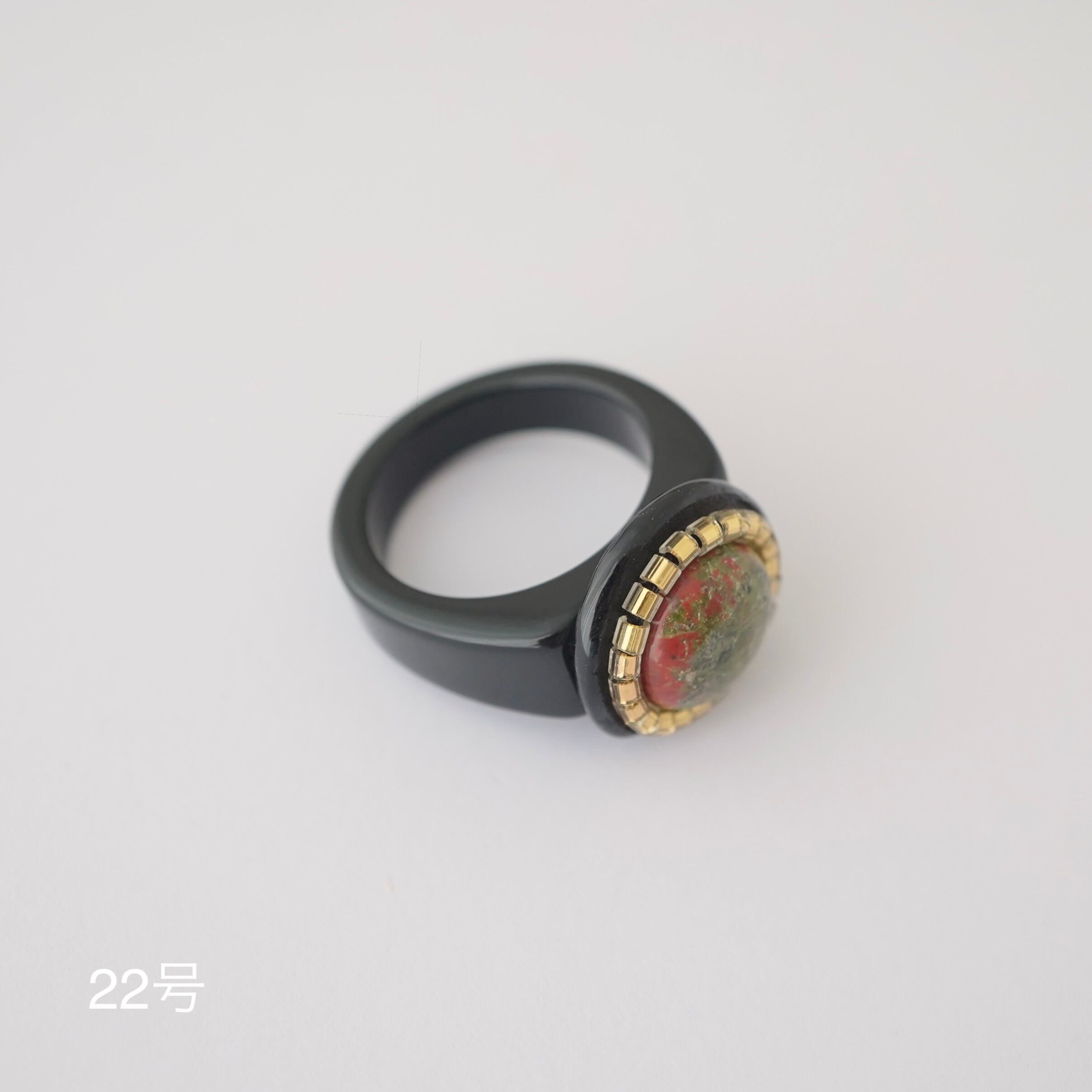 ・ゴールドのガラスビーズが石の美しさを際立たせる