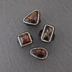 ・ゴールドのガラスビーズが石の美しさを際立たせる