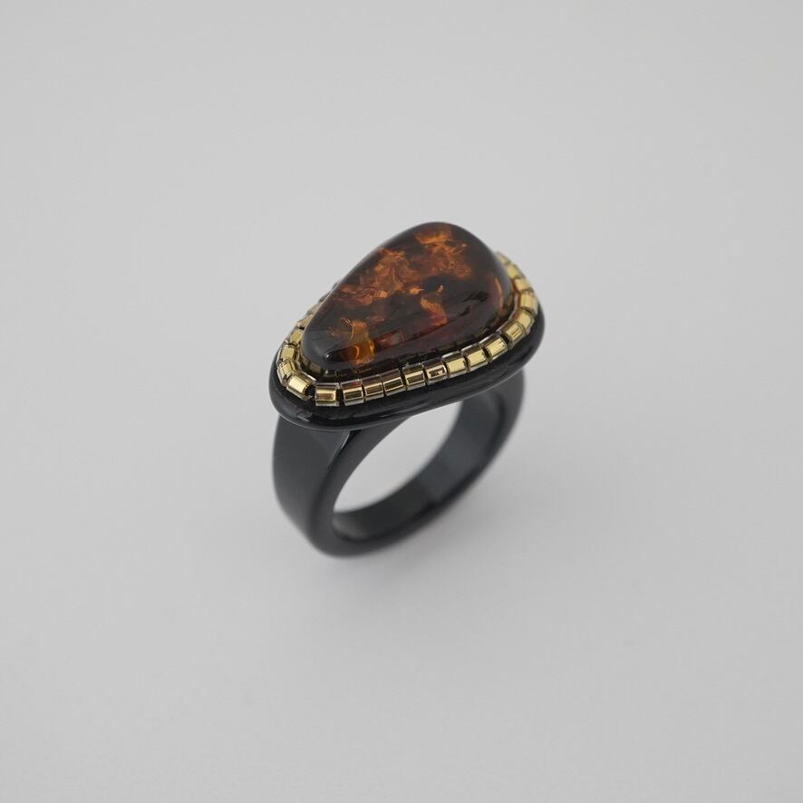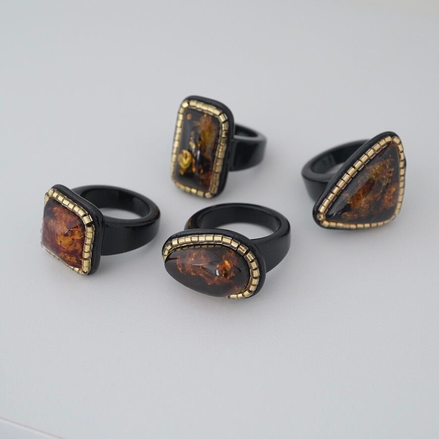 ・ゴールドのガラスビーズが石の美しさを際立たせる