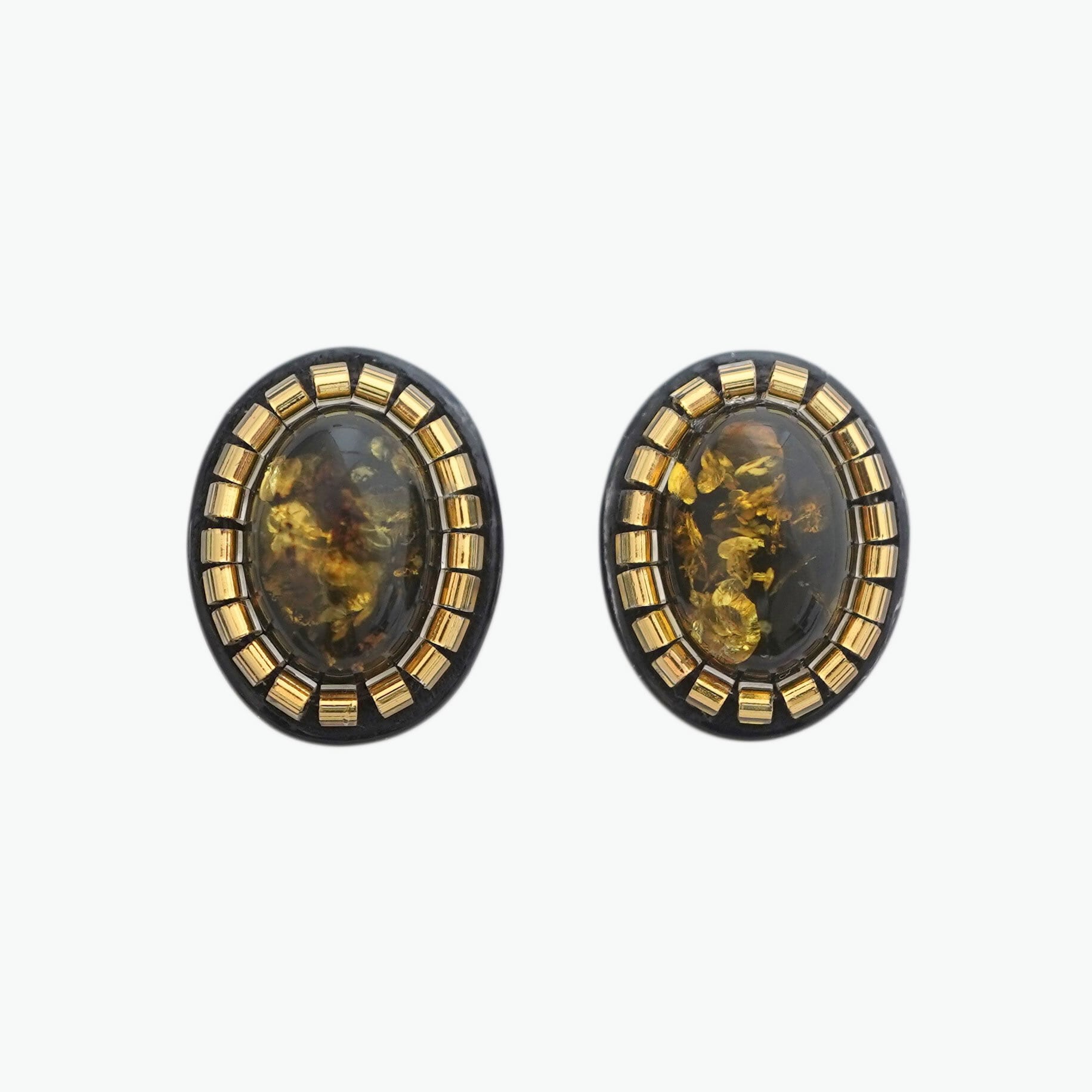鮮烈なイエローをモードに昇華させたコレクション。 「可愛い」だけではない、自立した大人の「意志」を感じさせる、エッジの効いたイエローカラーアンバーをメインモチーフに。 アンバーの裏面に施された漆黒のコーティングと、重厚な本革の土台。このコントラストが、イエローの純粋な輝きに「モードな奥行き」を与え、確固たる存在感へと昇華させています。 約16×20mmのモチーフサイズは、顔まわりに確かなスパイスを添えつつ、デイリーなスタイリングにも馴染む絶妙なバランス。洗練された大人のための、日常に高揚感を与える一品です。