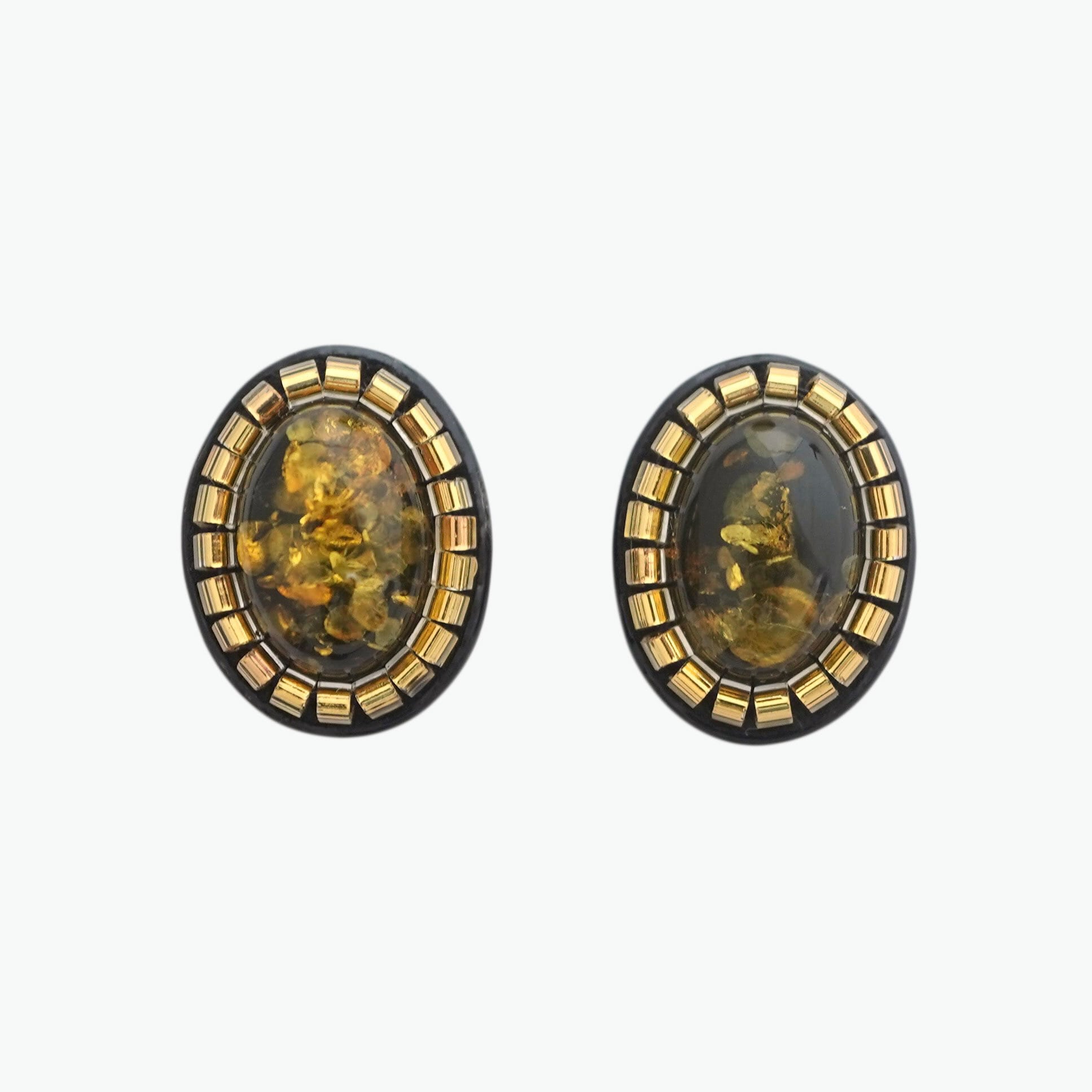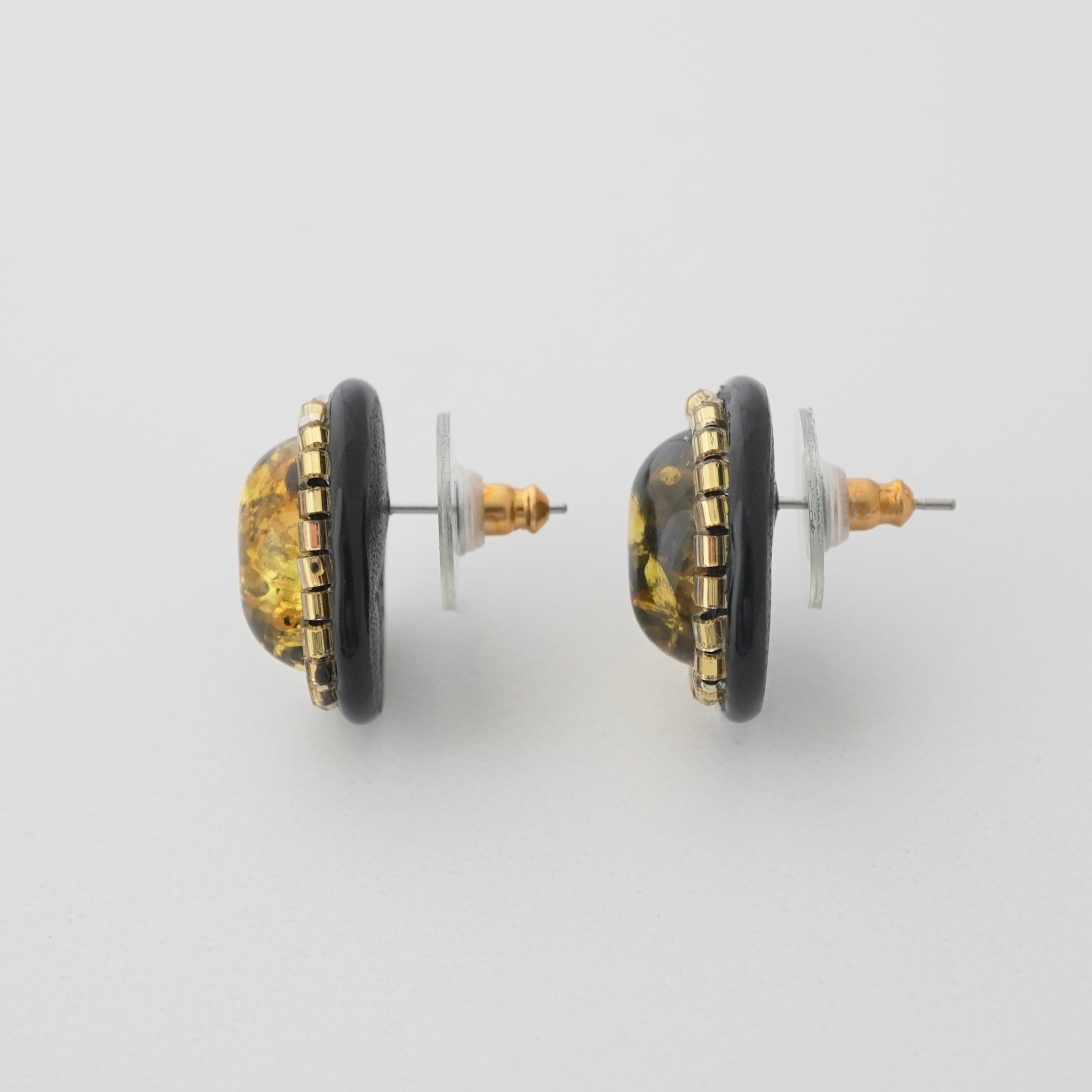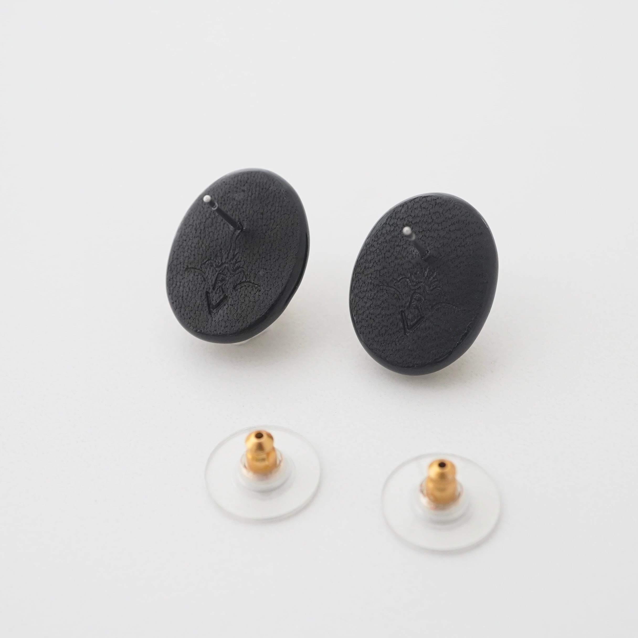 鮮烈なイエローをモードに昇華させたコレクション。 「可愛い」だけではない、自立した大人の「意志」を感じさせる、エッジの効いたイエローカラーアンバーをメインモチーフに。 アンバーの裏面に施された漆黒のコーティングと、重厚な本革の土台。このコントラストが、イエローの純粋な輝きに「モードな奥行き」を与え、確固たる存在感へと昇華させています。 約16×20mmのモチーフサイズは、顔まわりに確かなスパイスを添えつつ、デイリーなスタイリングにも馴染む絶妙なバランス。洗練された大人のための、日常に高揚感を与える一品です。
