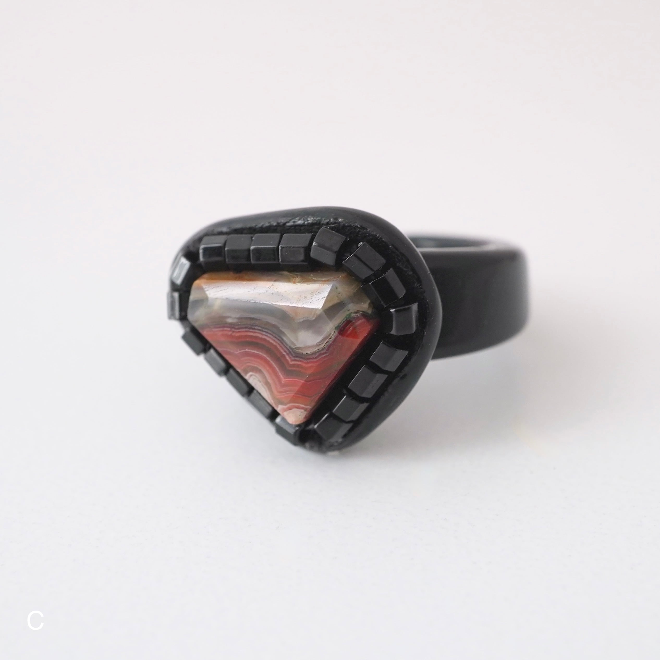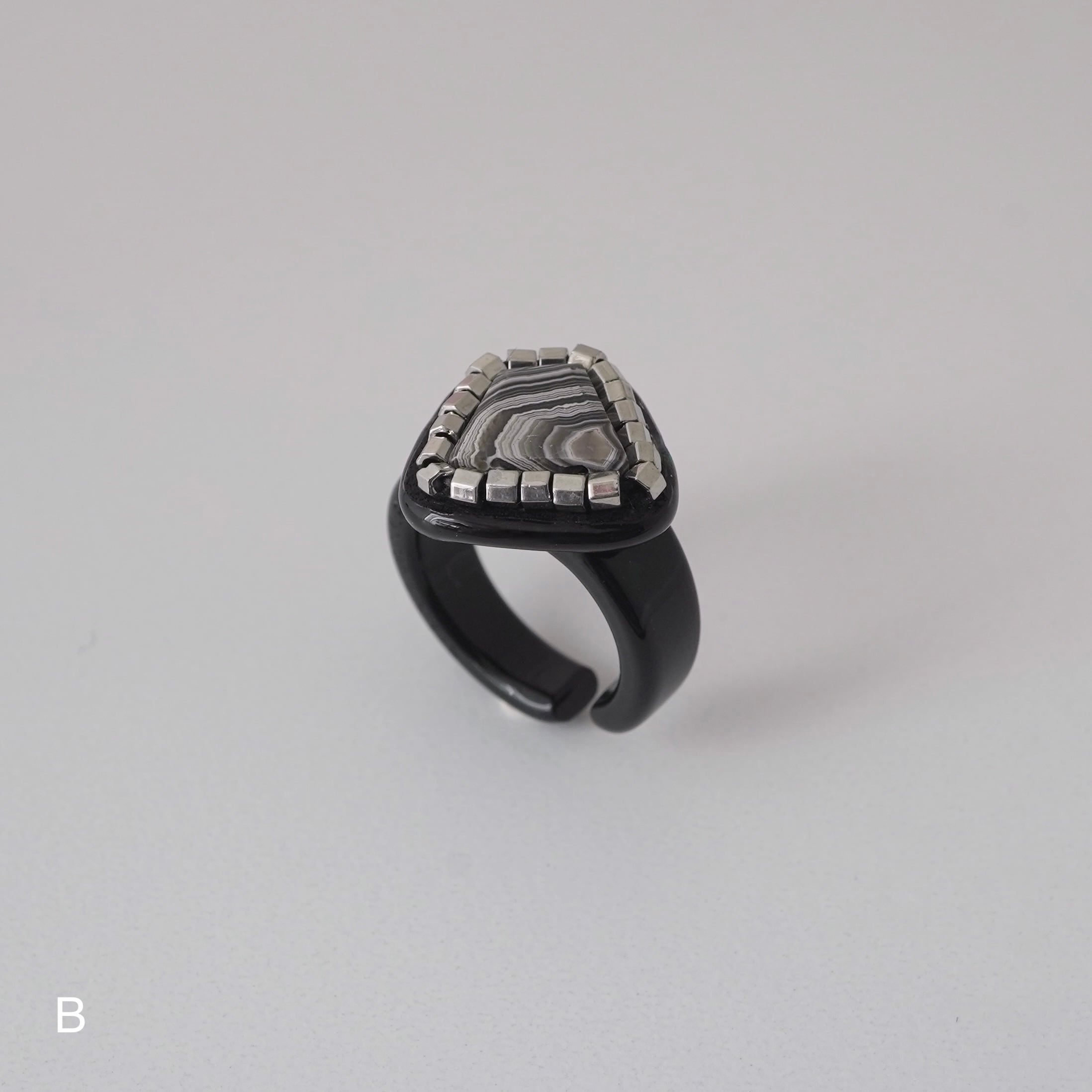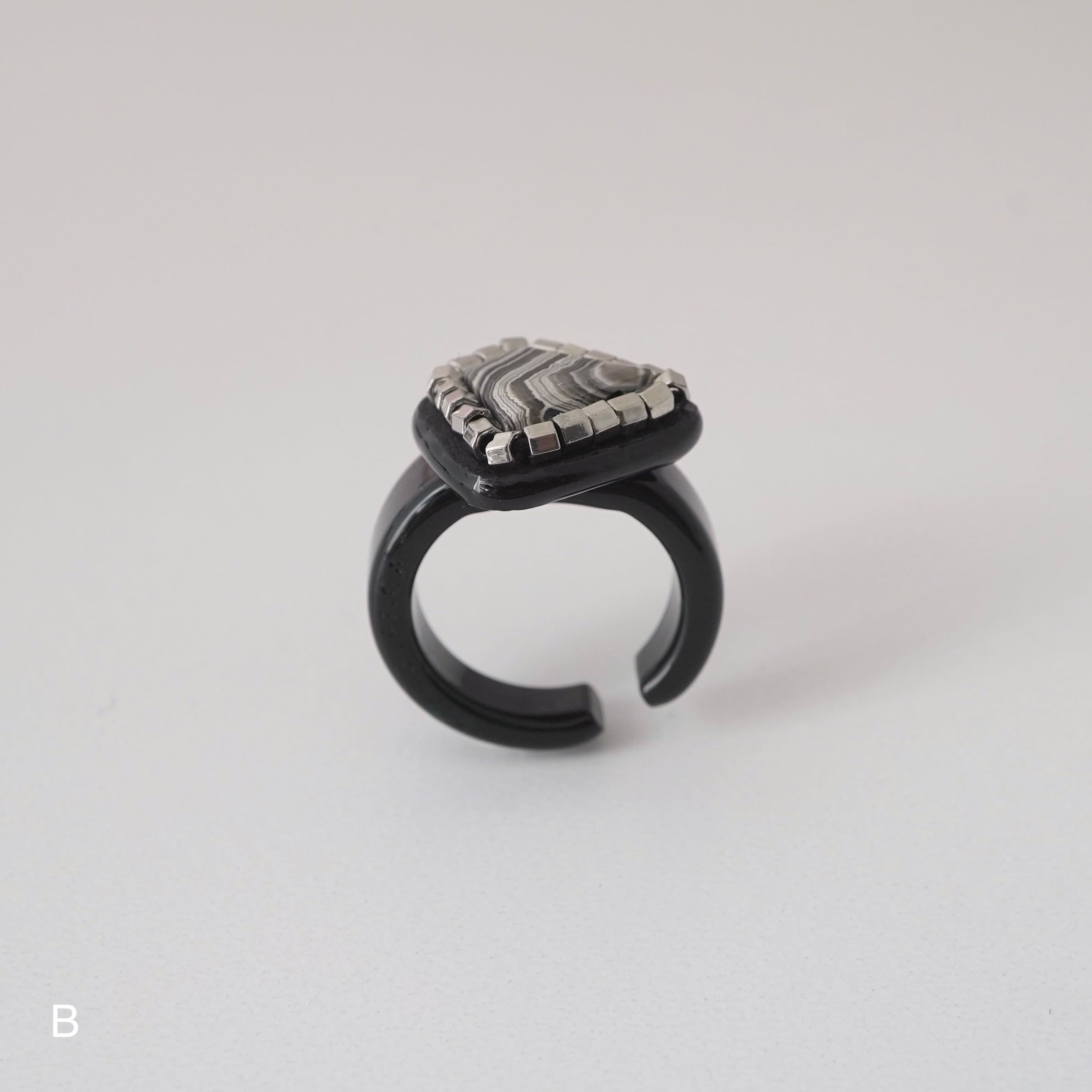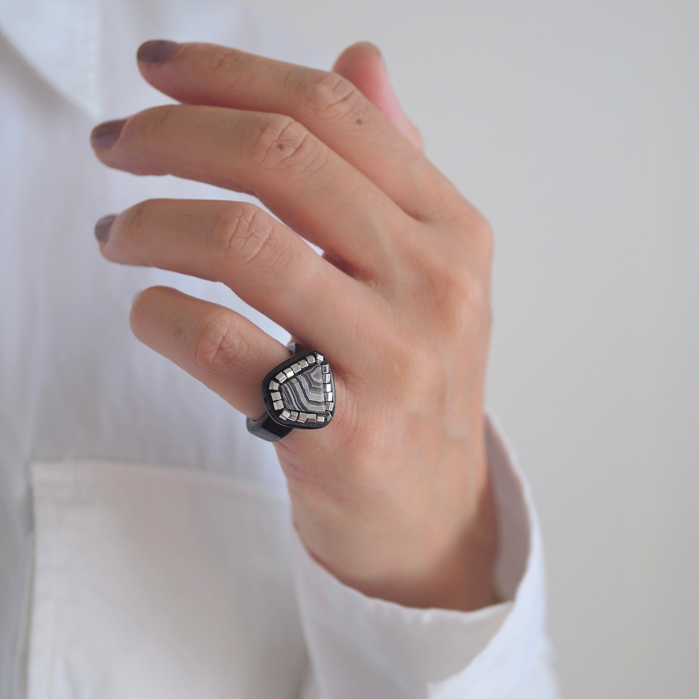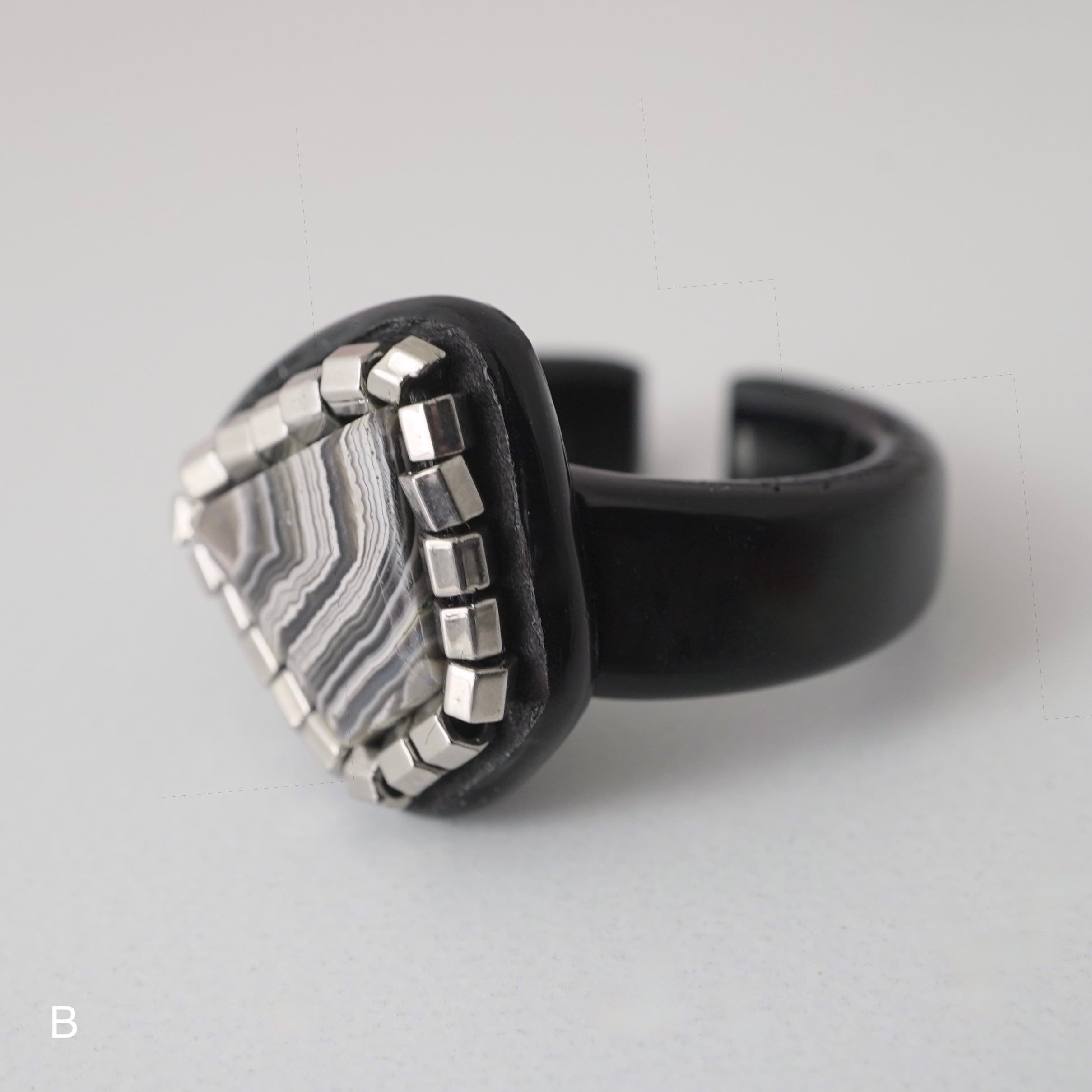 イヤーカフとピンキーリングの 「二面性」を持つ、Duality(デュアリティー)シリーズ。メキシコの大地が長い年月をかけて描き出した、 神秘的な「ラグナレースアゲート」。 幾重にも重なるこの縞模様は、二つとして同じ表情を持たない、あなただけの特別な景色。