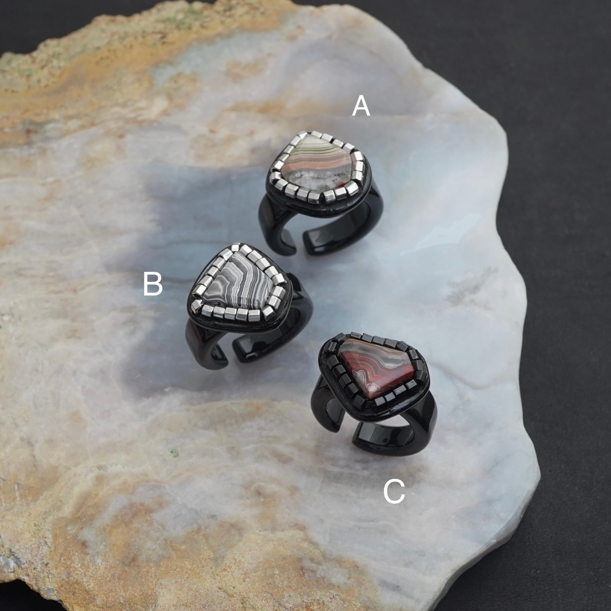 天然石の模様や形状を活かして制作しているため、