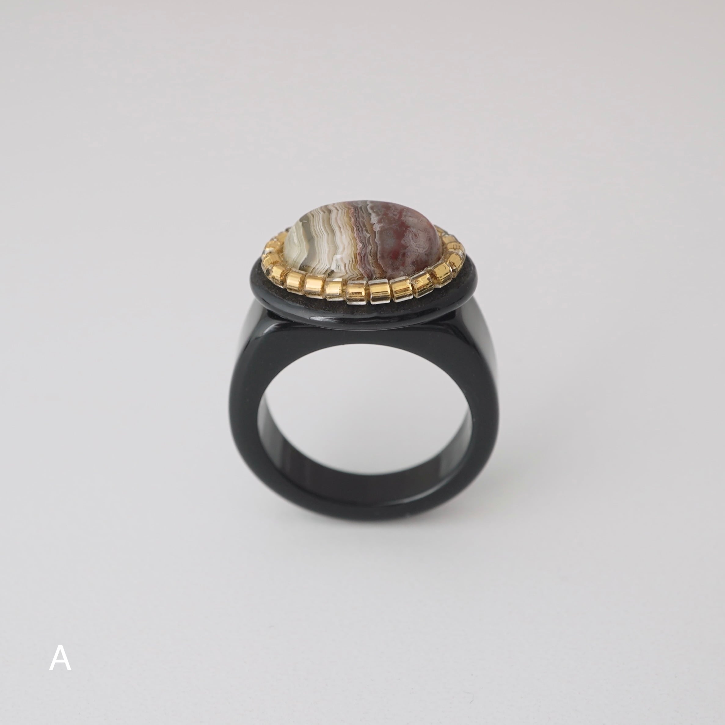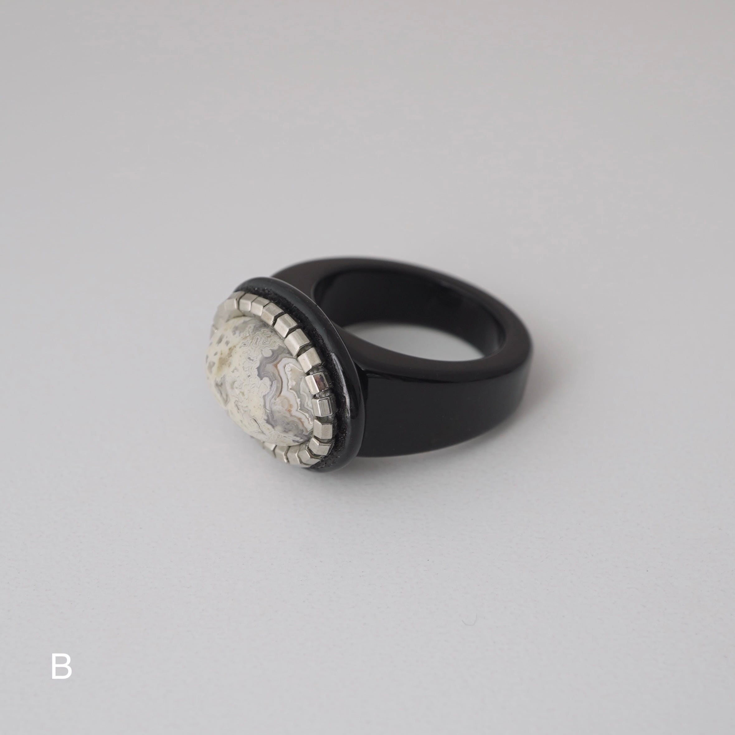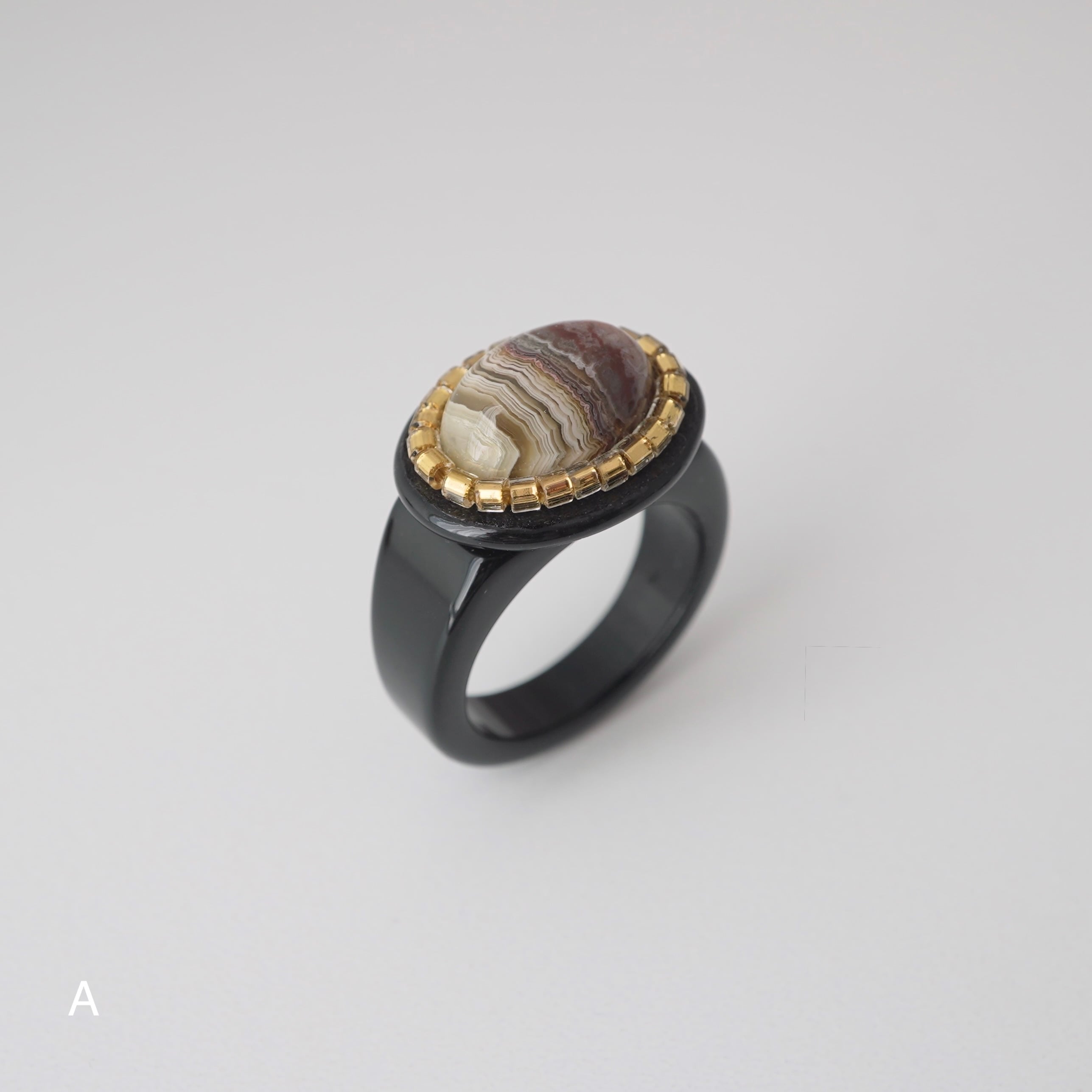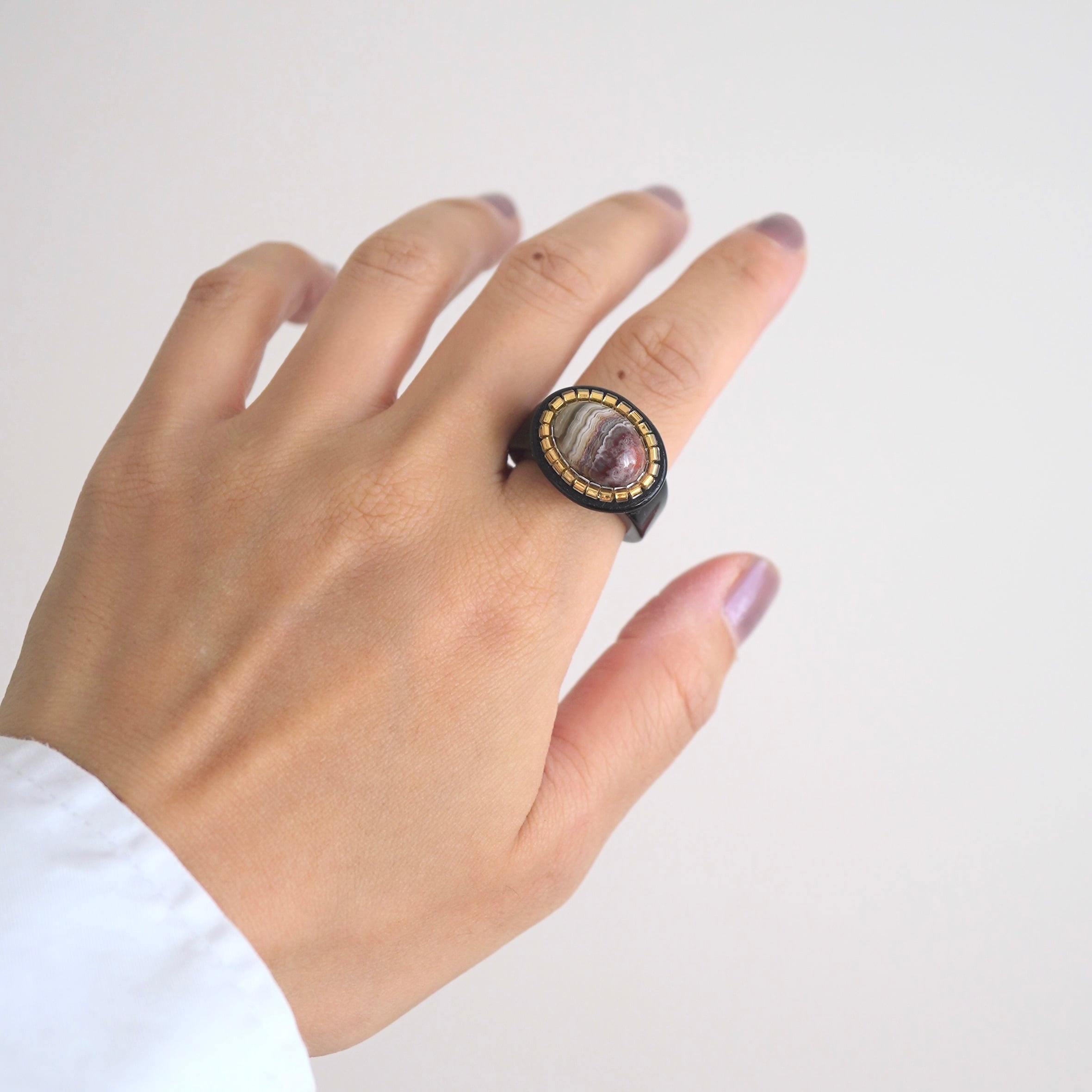 天然石であるラグナレースアゲートは、一粒ごとに異なる色の重なりや層が神秘的な造形を描き出します。 お手元に届くのは、世界にたった一つしかない、あなただけの表情を持ったピース。石が持つ色彩や縞模様の出方に合わせ、その個性を最も美しく際立たせるカラー(ゴールドまたはシルバーカラー)をセレクトしました。