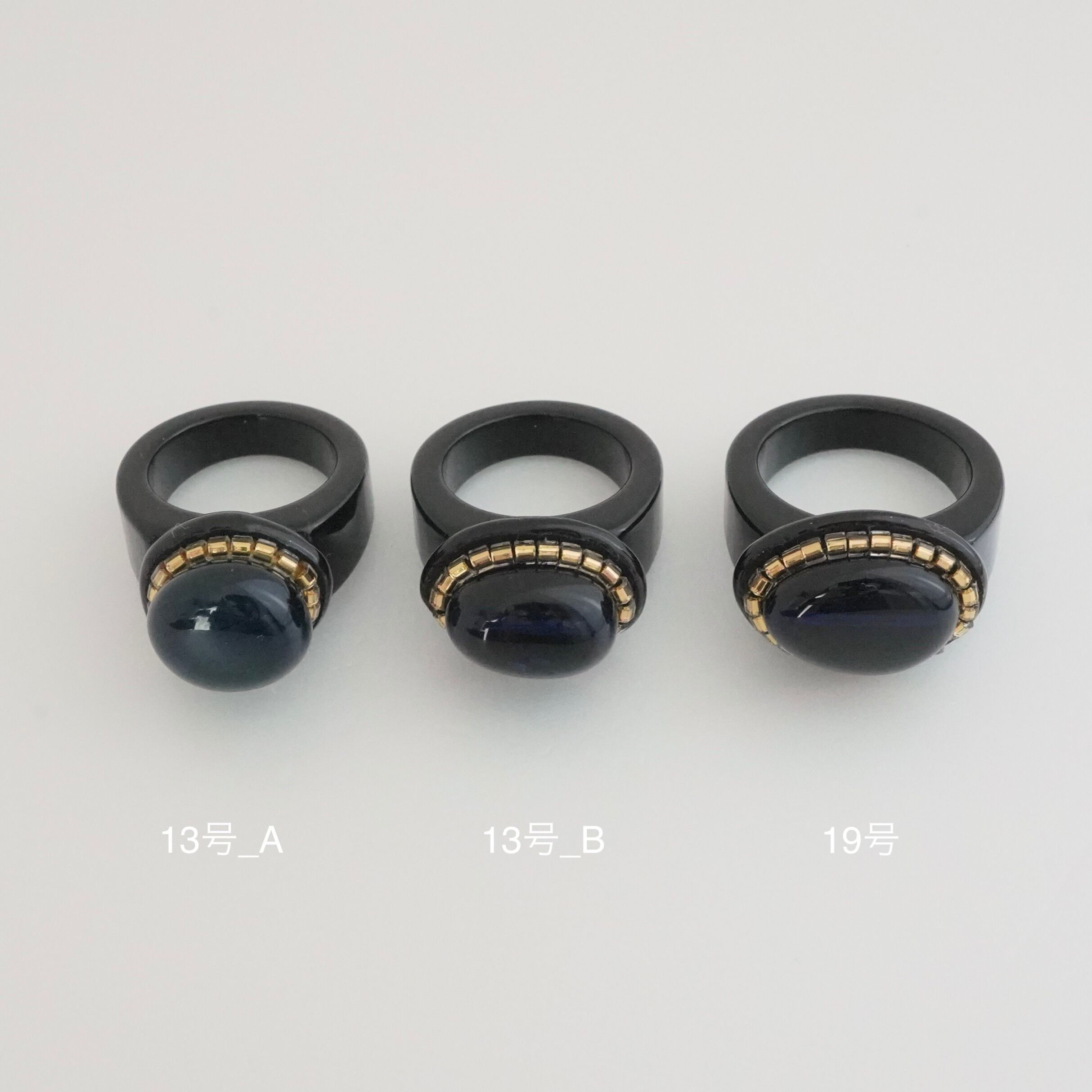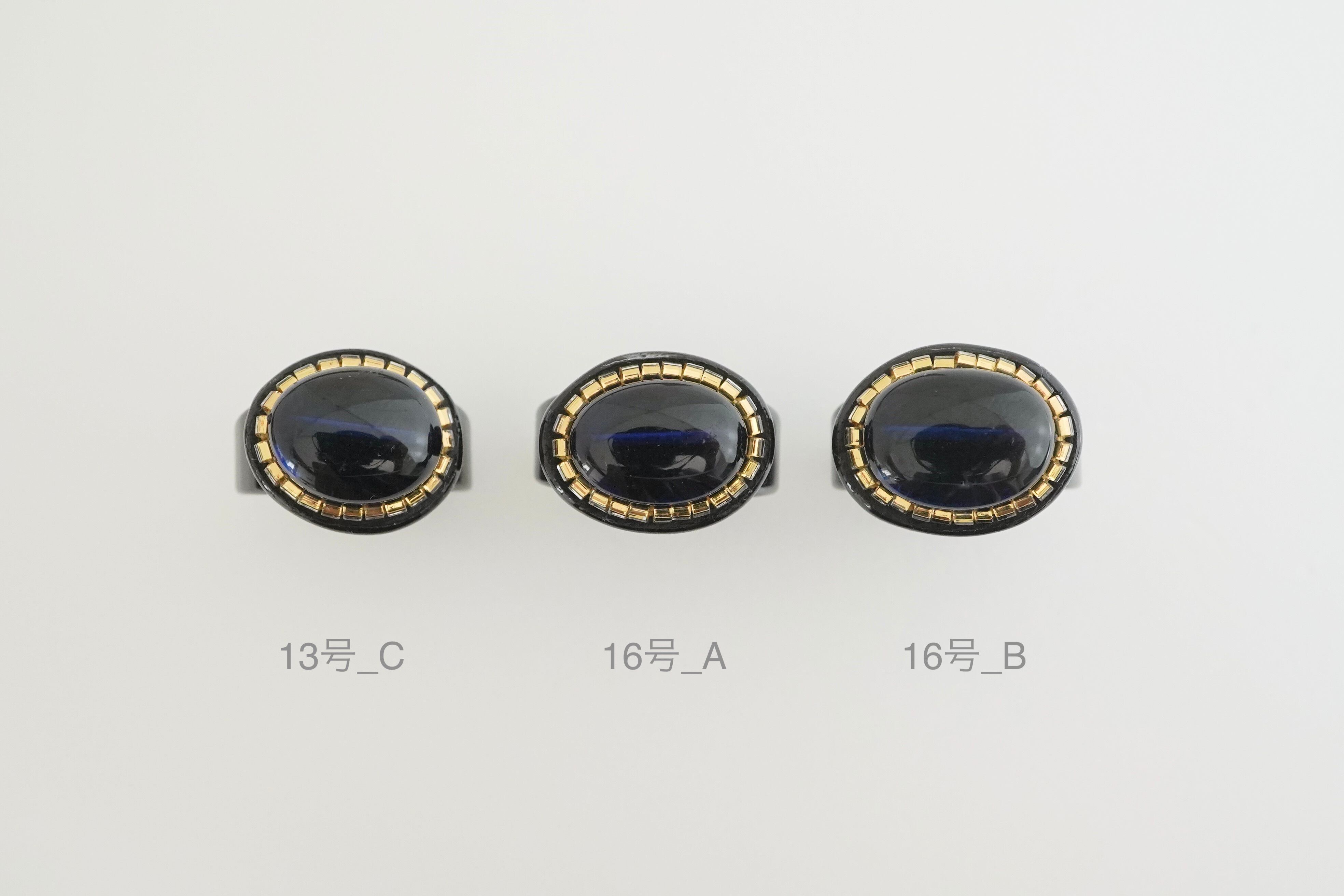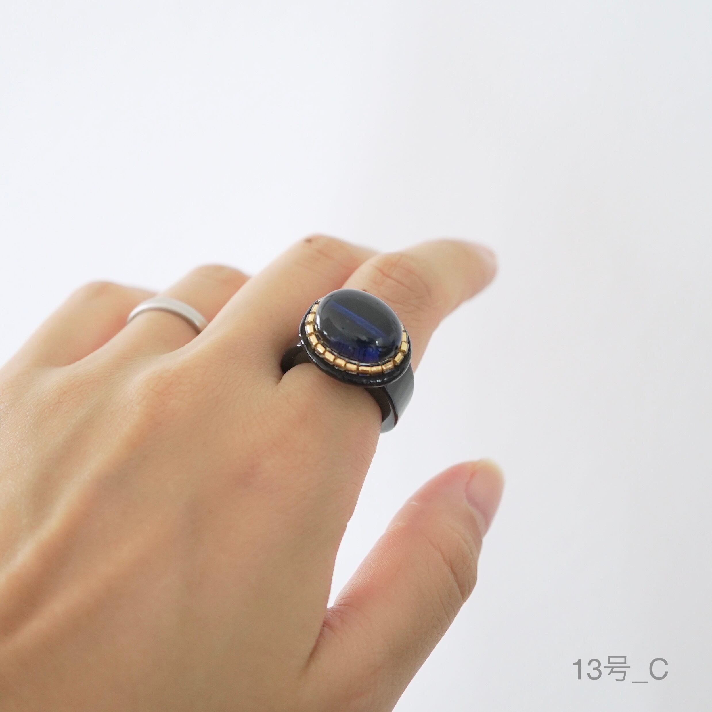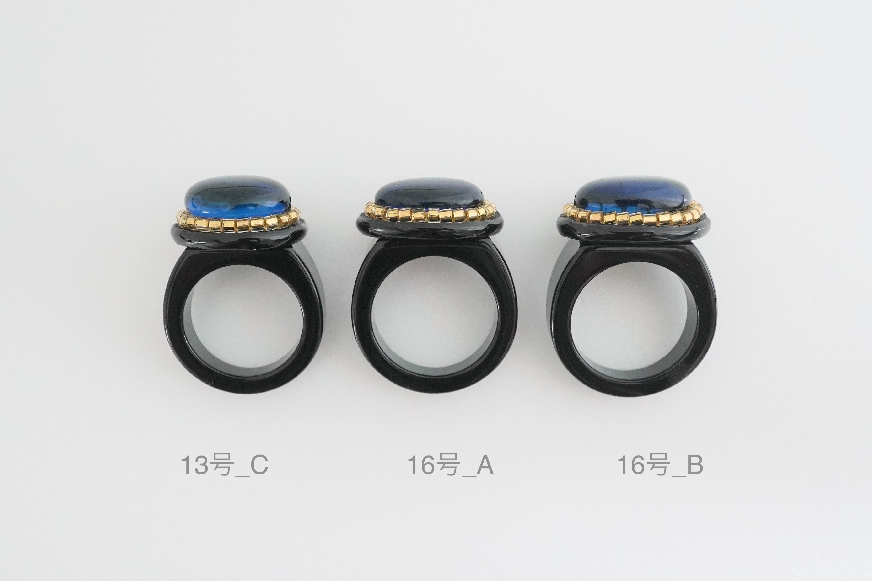 神秘的なブルーが印象的な「ディープブルーアンバー」。植物由来の染料により深みのある青色に染められたリトアニア産の琥珀です。透明感に満ちた素材のため、光の当たり具合や見る角度によって異なる「ブルー」を楽しむことができます。アンバーを縁取るガラスビーズはゴールドカラーです。