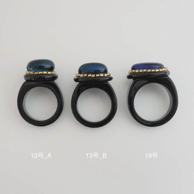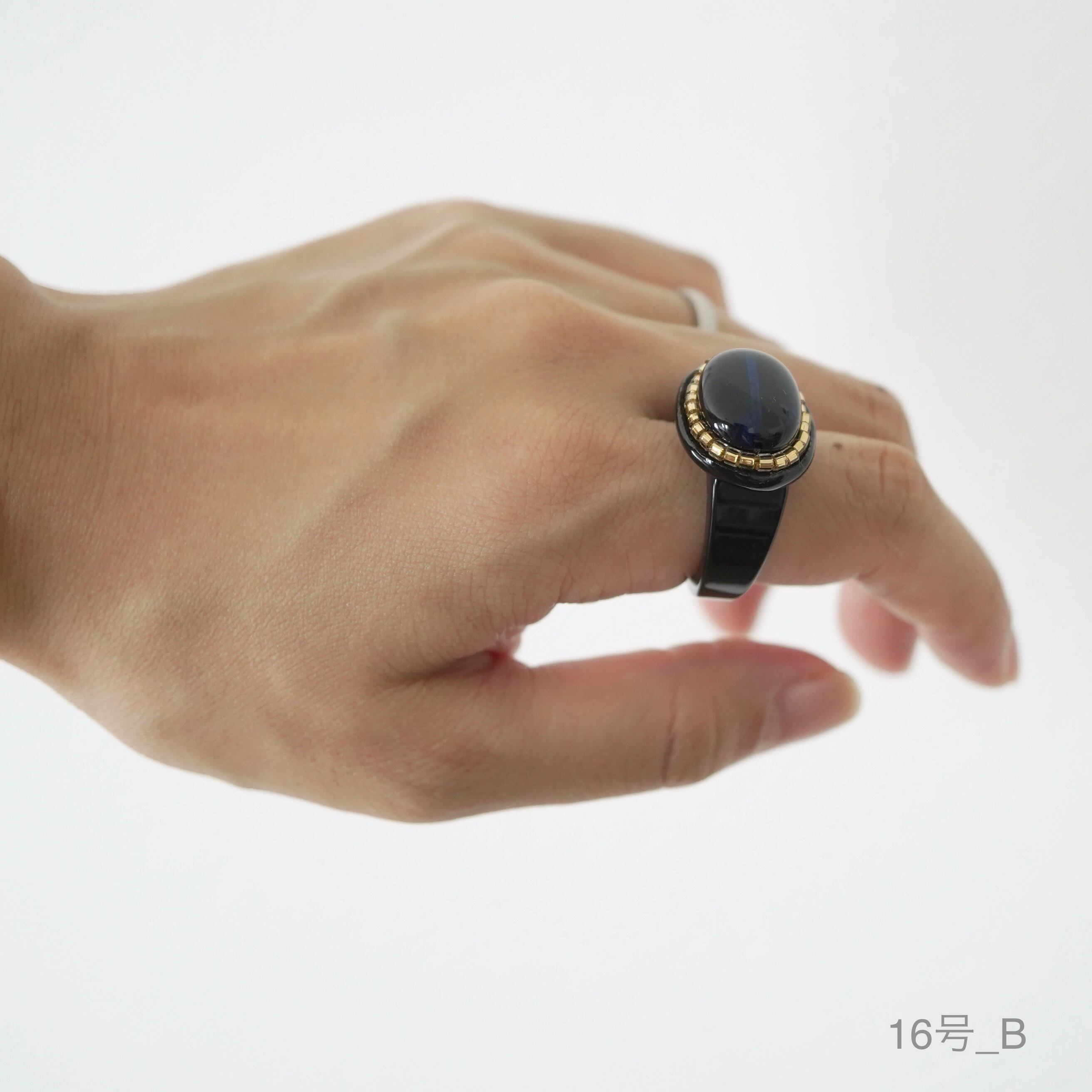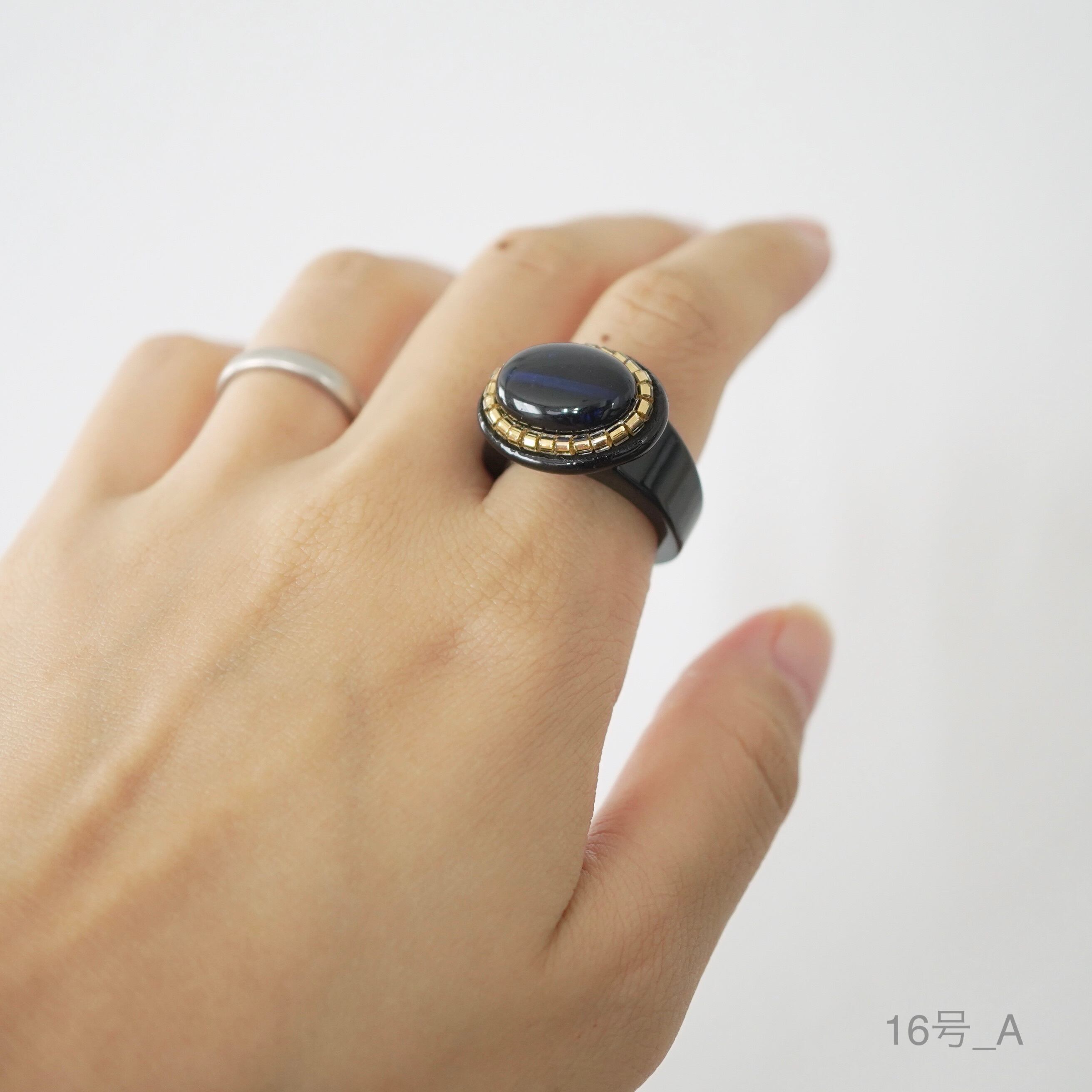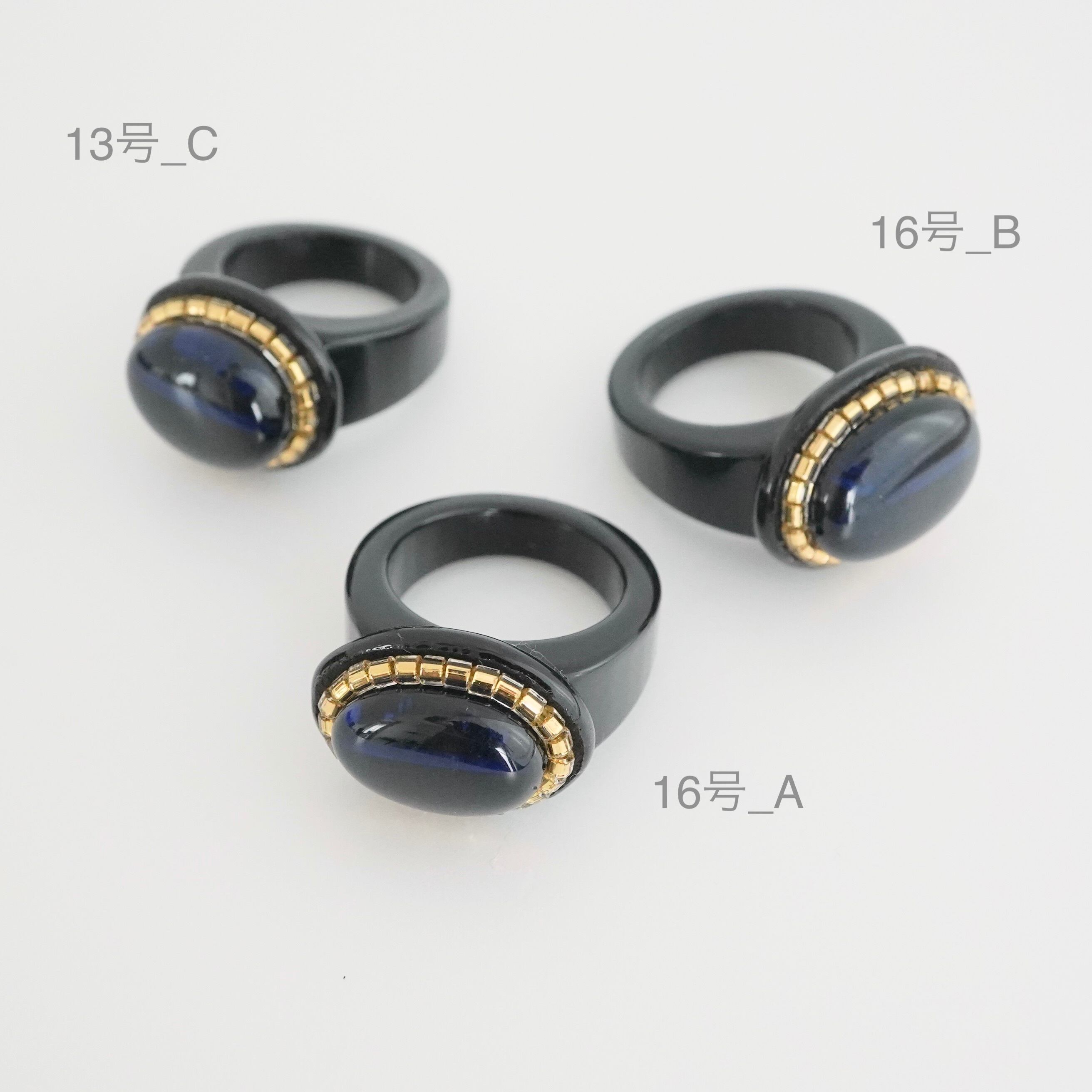神秘的なブルーが印象的な「ディープブルーアンバー」。植物由来の染料により深みのある青色に染められたリトアニア産の琥珀です。透明感に満ちた素材のため、光の当たり具合や見る角度によって異なる「ブルー」を楽しむことができます。アンバーを縁取るガラスビーズはゴールドカラーです。