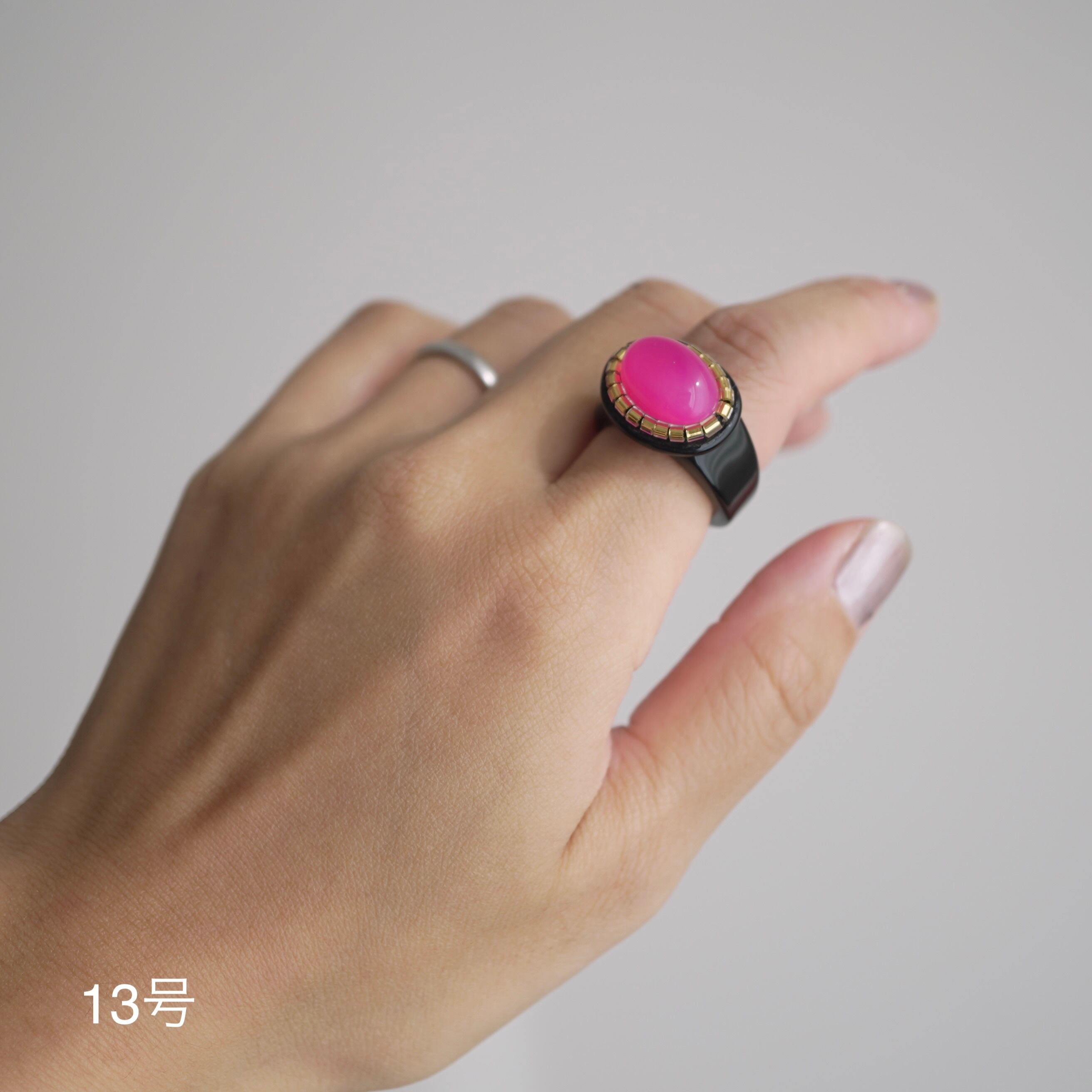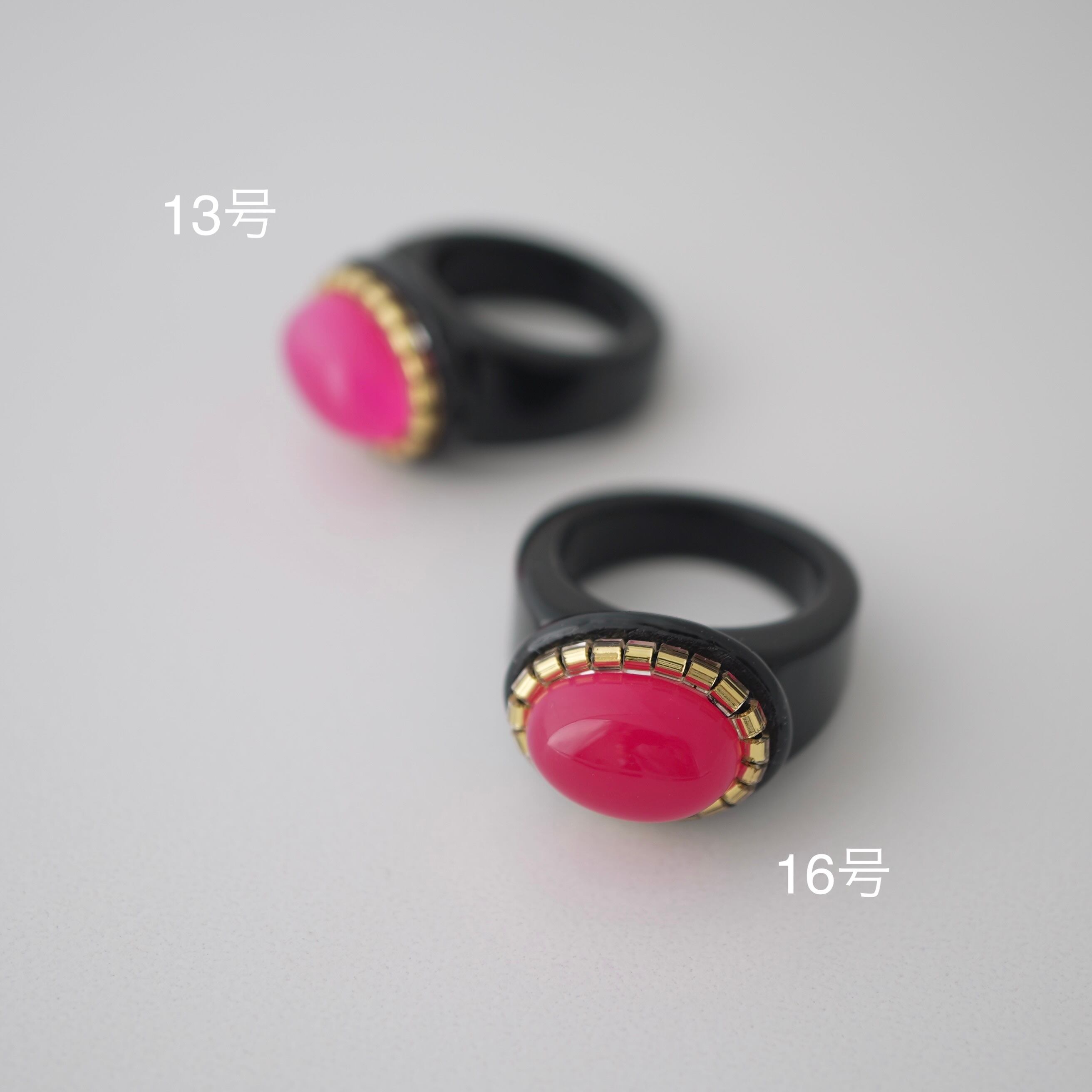 マゼンタカラーの小ぶりなカルセドニーをゴールドカラーで縁取ったヴィンテージライクな一点。